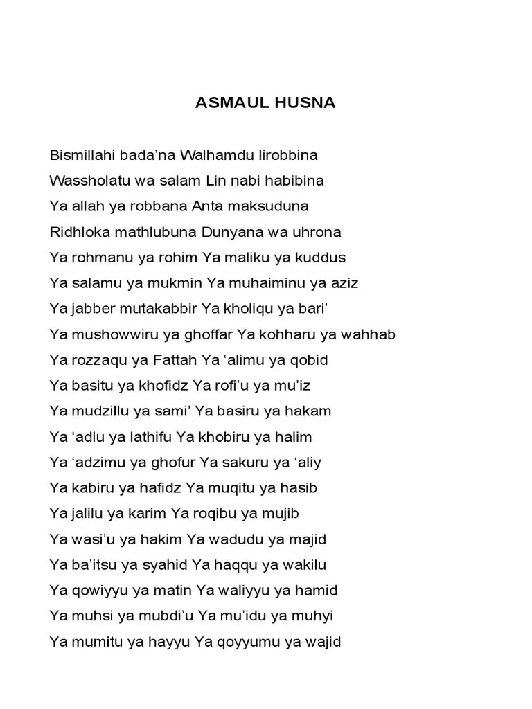 Details.check spelling or type a new query. Setiap muslim dianjurkan membaca dan meresapi makna dari asmaul husna. Doa sebelum membaca asmaul husna arab latin dan terjemah bahasa indonesia, these days, a lot more creators on the market search for absolutely free instrumental background music free of charge downloads. bismillahi badana teks asmaul husna latin. Ordinary knowledge cannot benefit in.